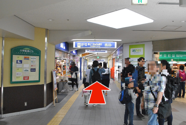 エスカレーターを下りて進みます。