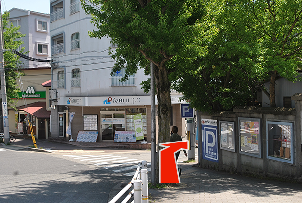 不動産屋とPの看板の間を進みます。