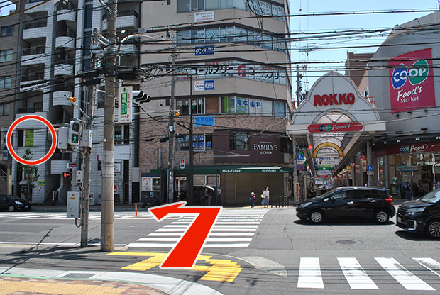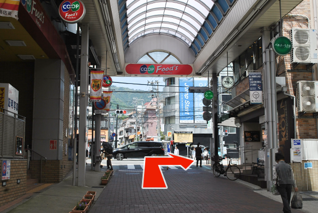 商店街の出口を右に曲がり15秒程進みます。
