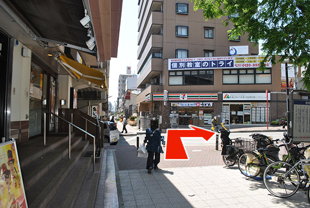 駅を出たら左へ進みます。
